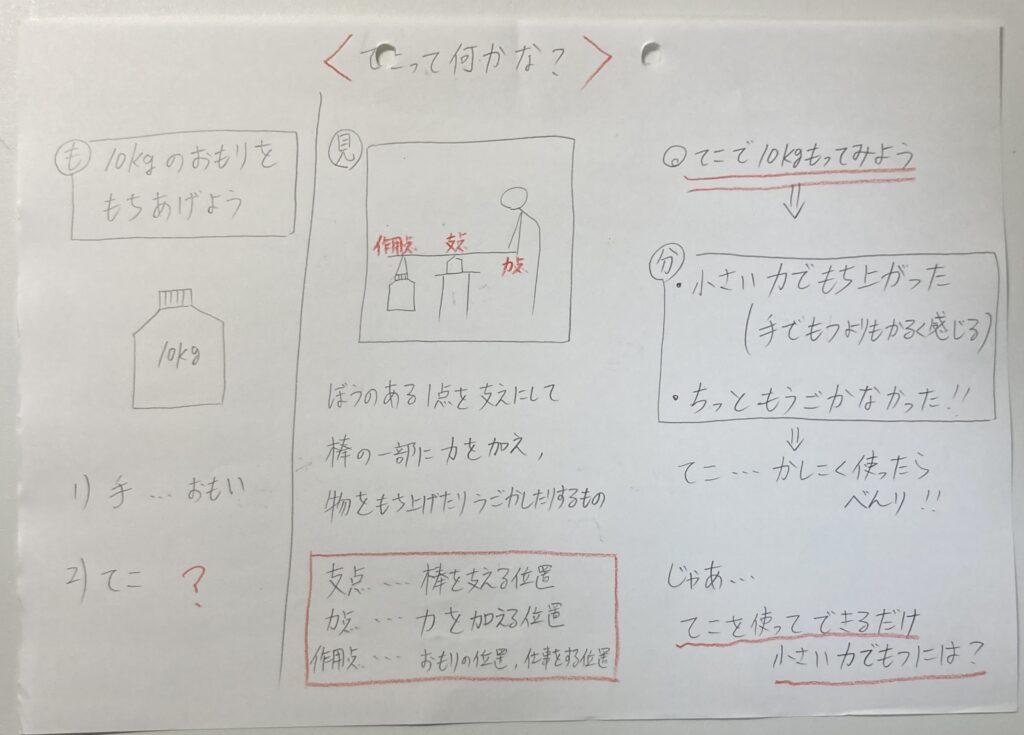 今回で言えば、てこの経験がない人ばっかりなので、自由試行をさせ、その経験をもとに考えさせたということです。
